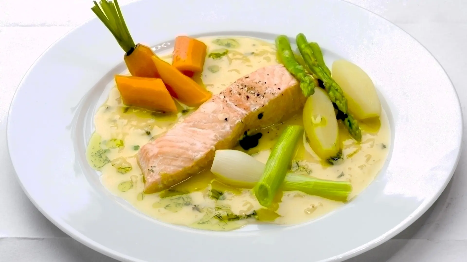 ”Stjerneskud” af rødspætte og laks i pandekage