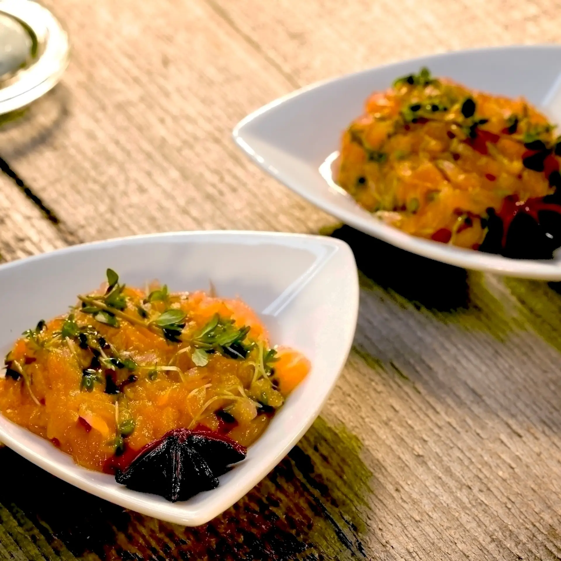 Læs opskrift : Tatar af røget hellefisk med letristede kerner på salsa af peberrod og kapers