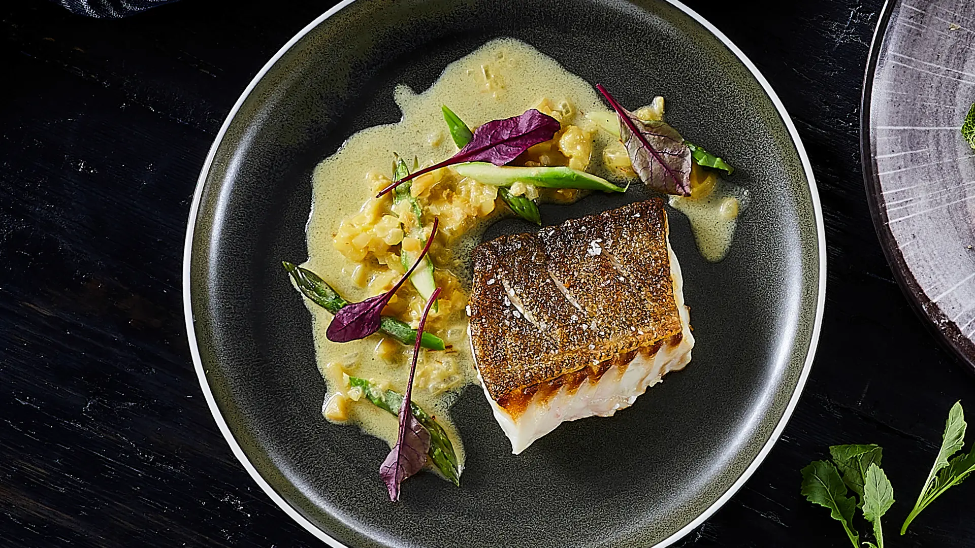 Skindstegt torsk på ragout af kammusling og grønne asparges