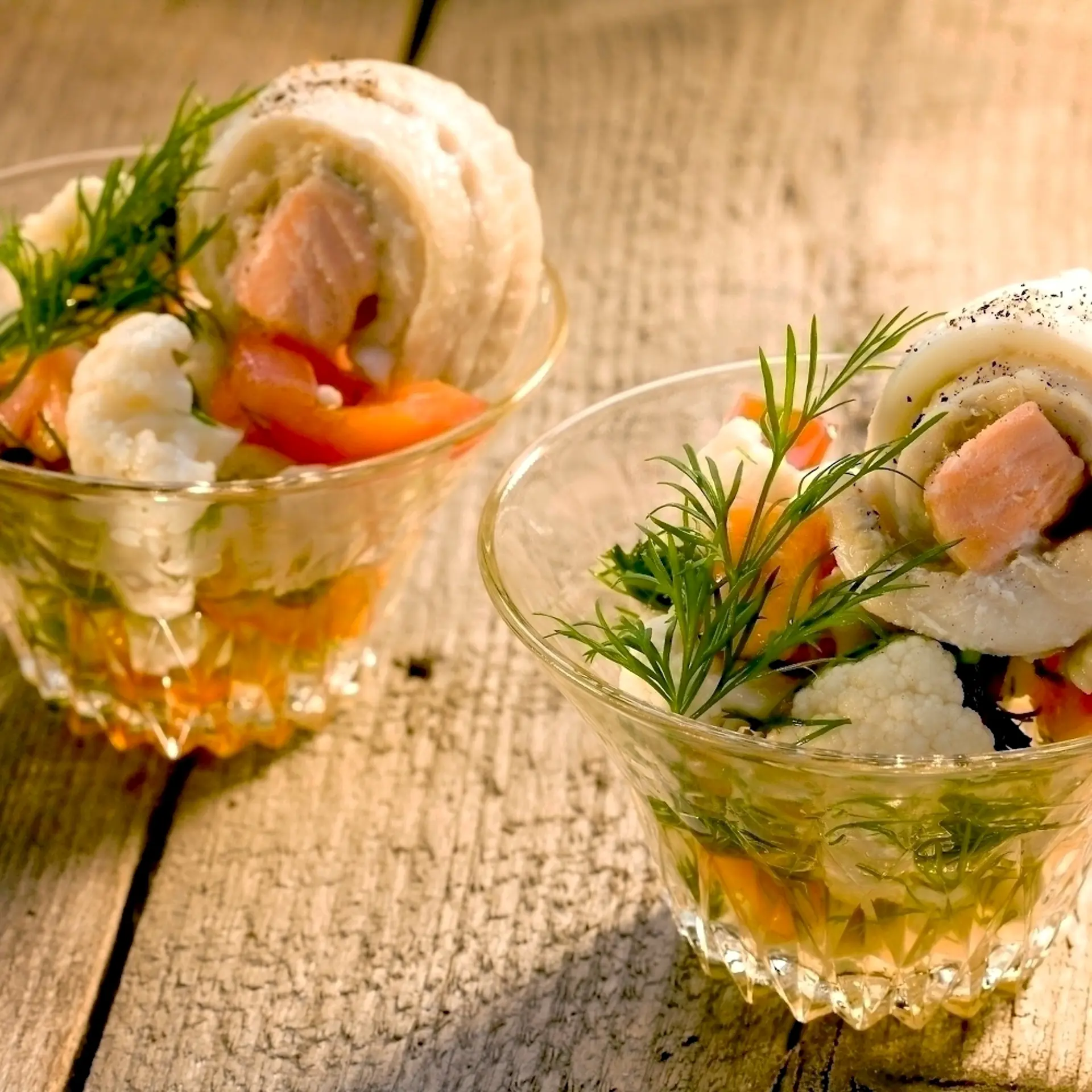 Stegt sejfilet med kold frikassé af kartofler og grønsager