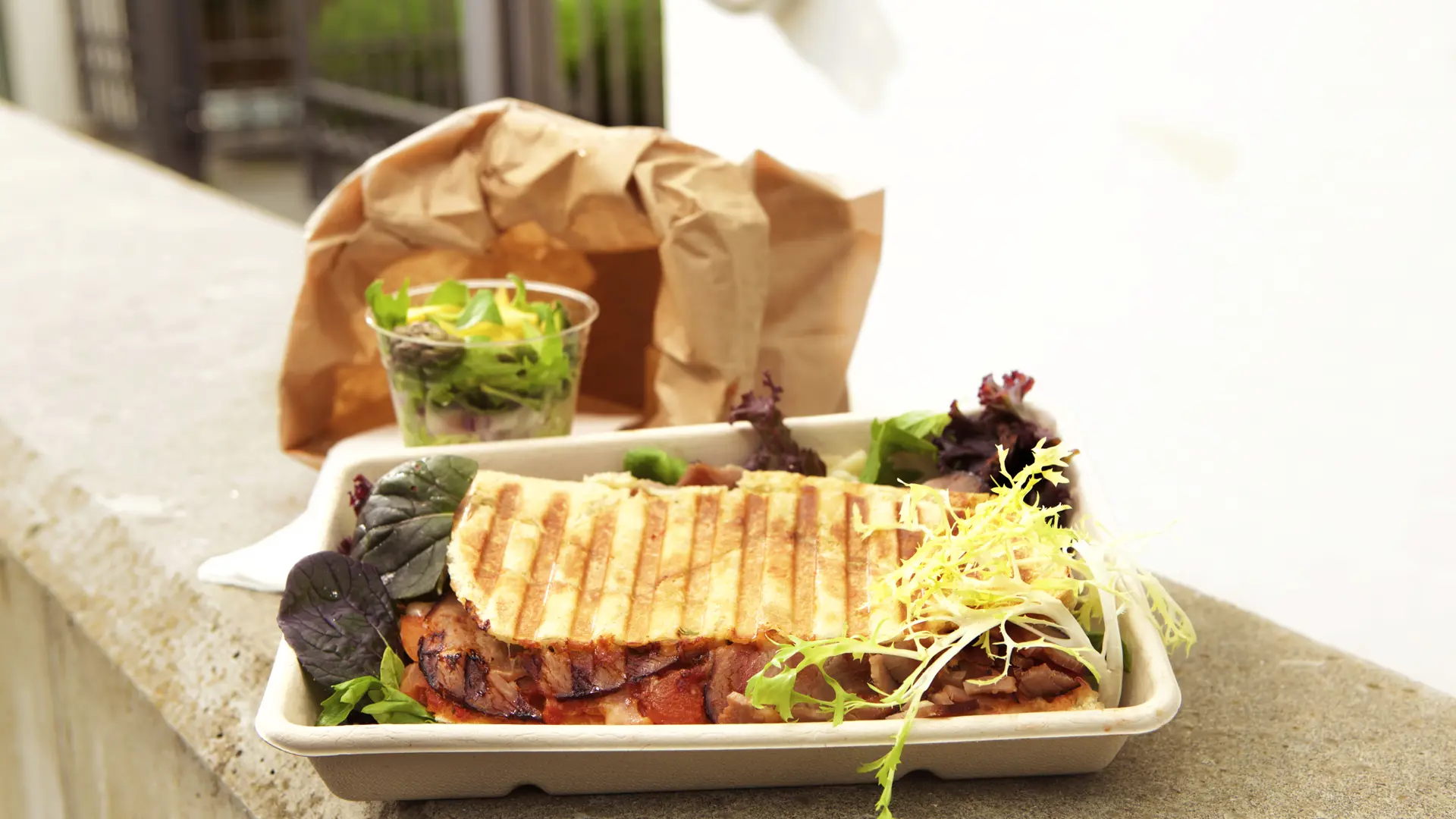 Panini med tomatsalsa, parmesan, røget tun og oliventapenade