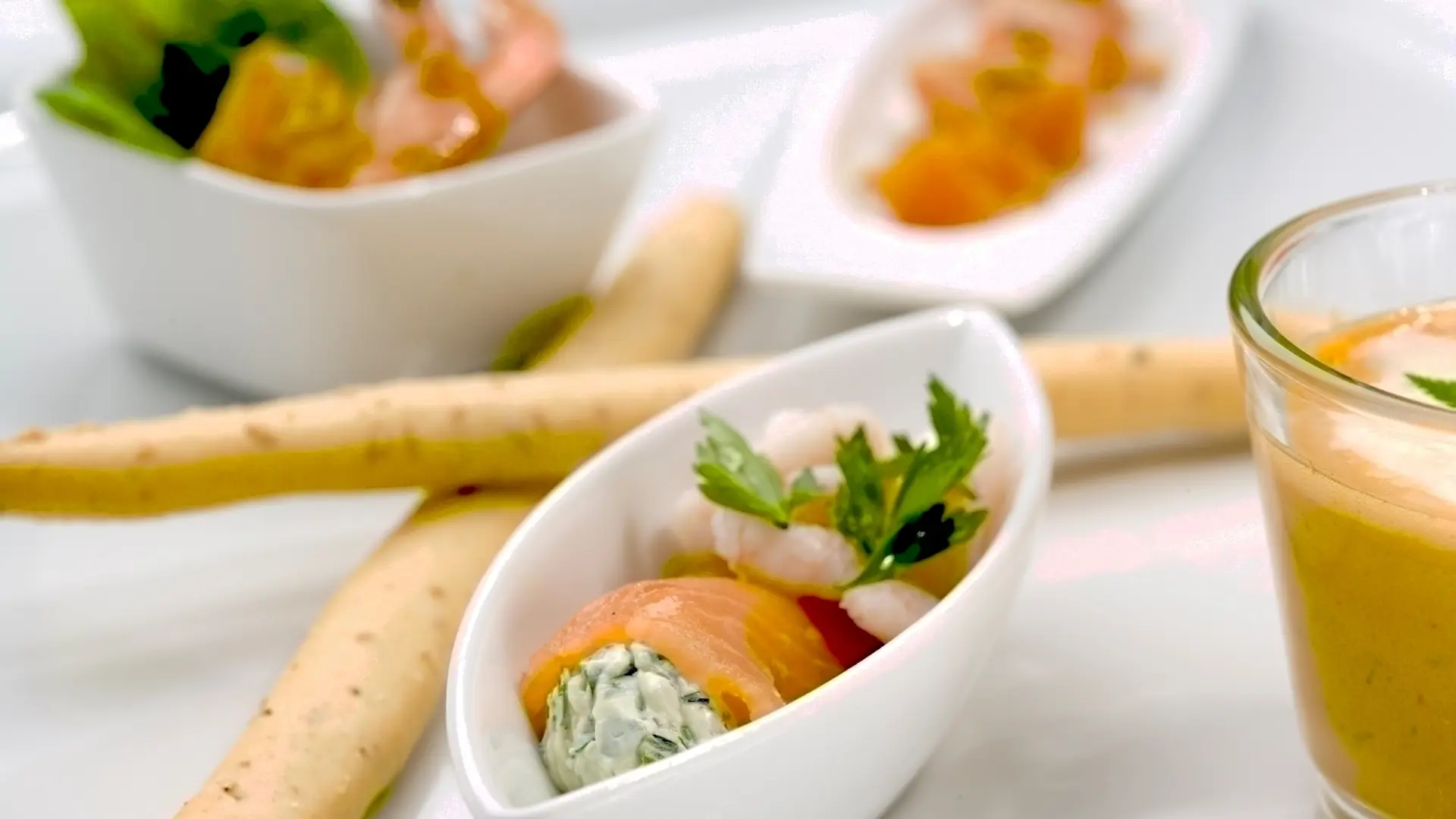 Pynt hvert kræmmerhus med rejer. Kan serveres fra fad eller på et lille spyd.