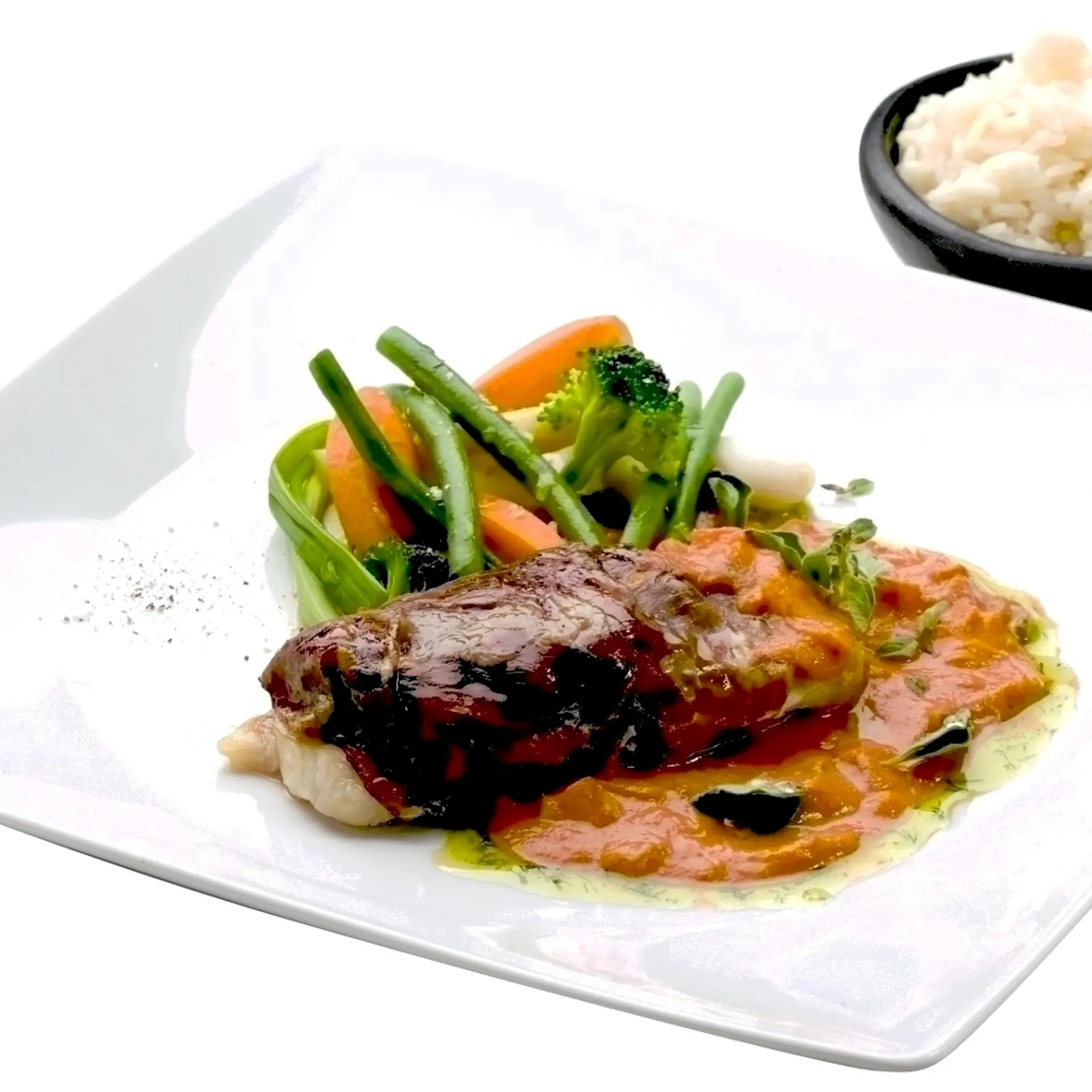 Stykke af torsk bagt i skaldyrsbouillon