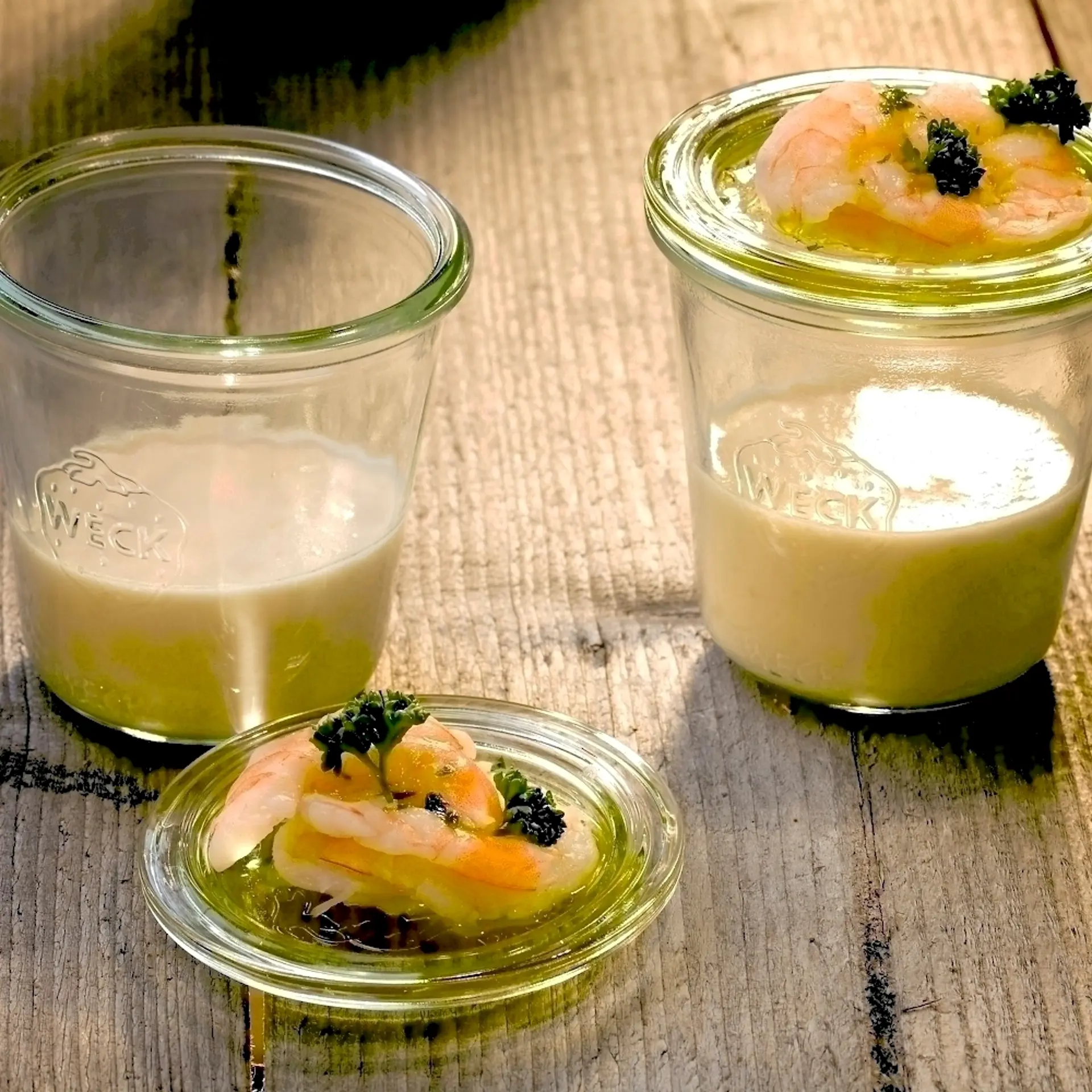 Læs opskrift : Cremet blomkålssuppe med rejer og krydderurtesmør
