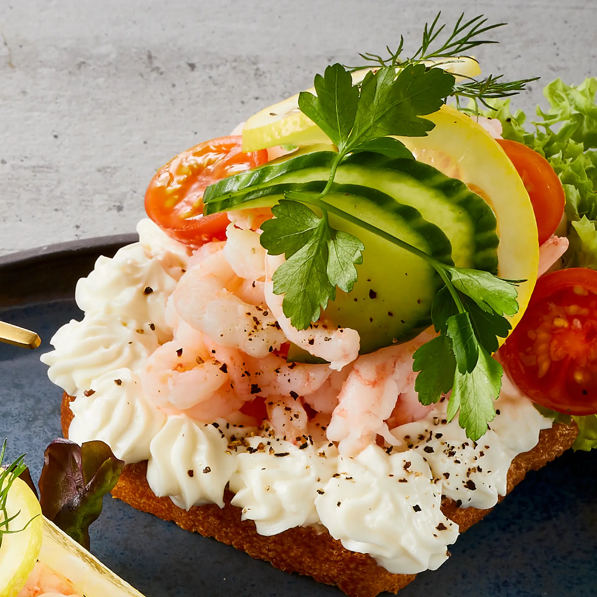 Læs opskrift : Klassisk rejemad på ristet franskbrød