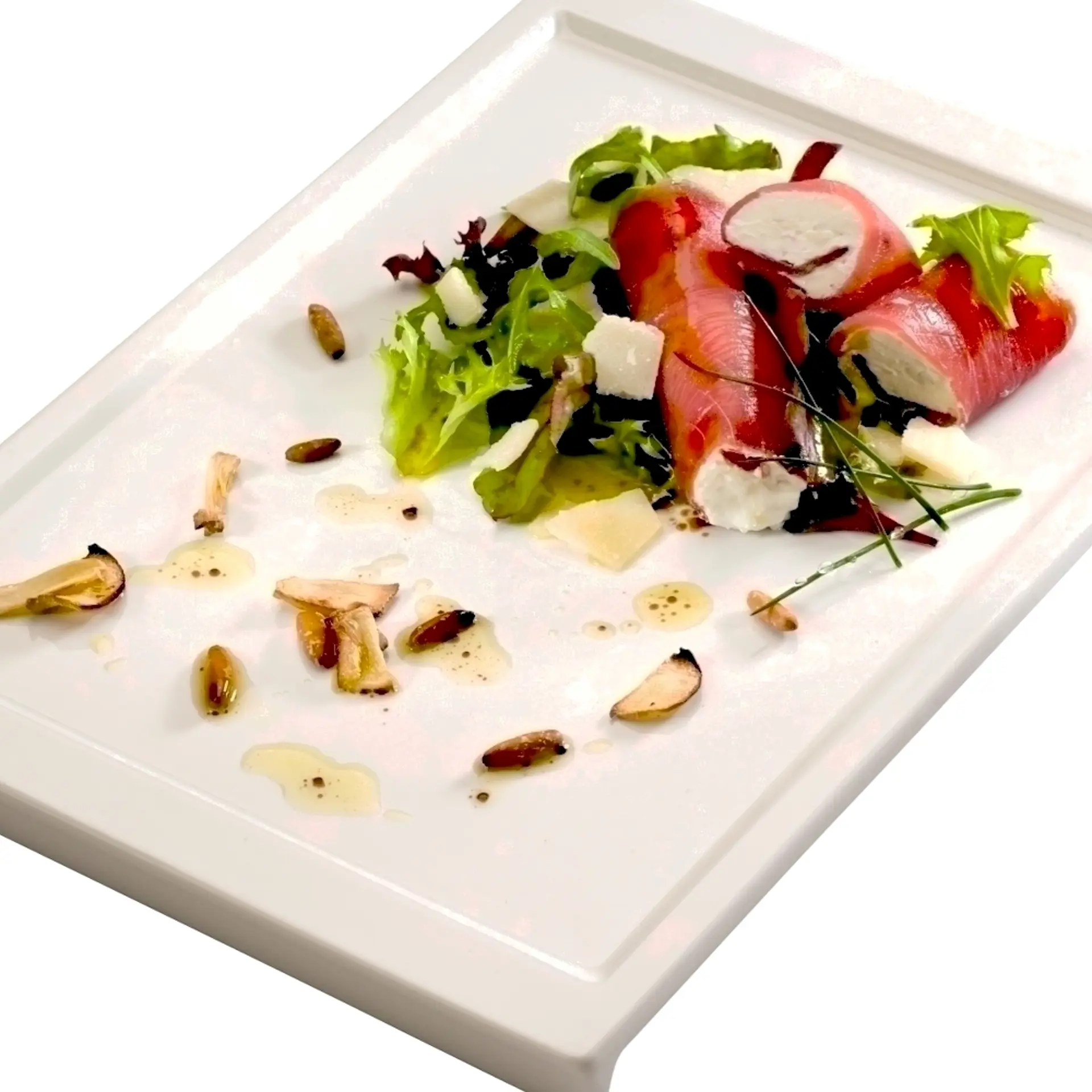 Læs opskrift : Cannelloni af røget tun, gorgonzolacreme og fast ost i flager