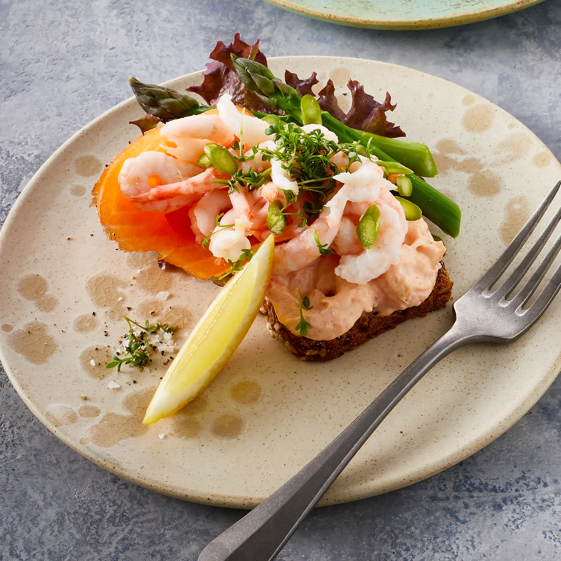 Læs opskrift : Rejesalat helt klassisk med kræmmerhus af røget laks fyldt med håndpillede rejer